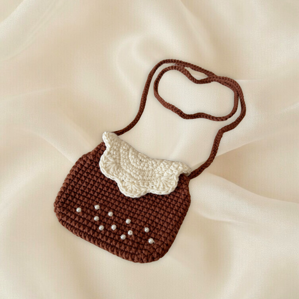 Vintage El Örgüsü Mini Omuz Çantası – İnci Detaylı Handmade Çanta